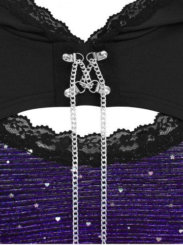 Plus Size Lace Trim Chains Textured Ruched Bell Sleeves Hooded T-shirt