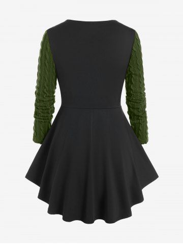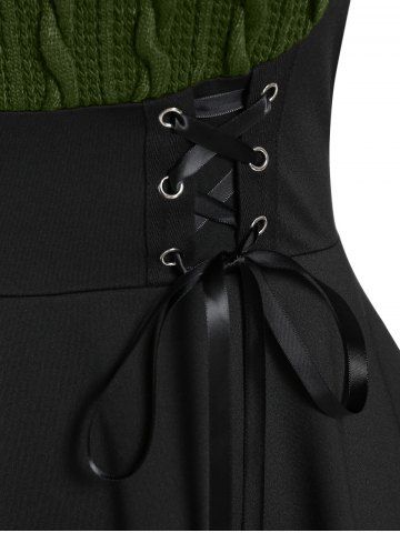 T-shirt à lacets en maille torsadée grande taille, matières mixtes - Vert Profond - 3x | Us 22-24