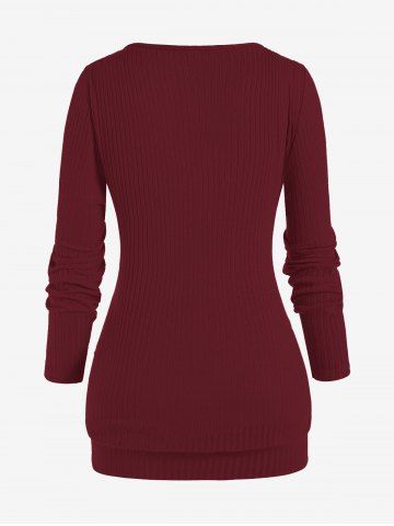 T-shirt Drapé Chaîne Superposé de Grande Taille avec Trou de Serrure - Rouge Foncé - 1x | Us 14-16