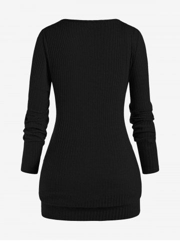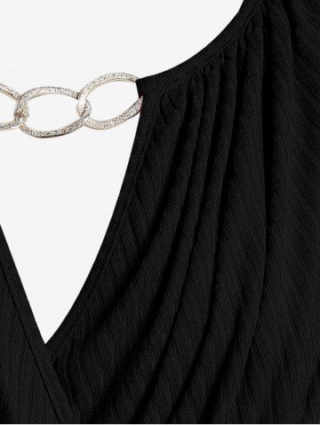 T-shirt Drapé Chaîne Superposé de Grande Taille avec Trou de Serrure - Noir - Noir