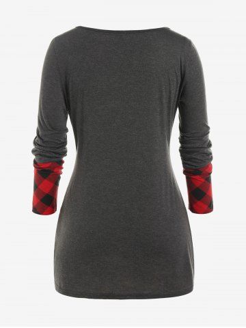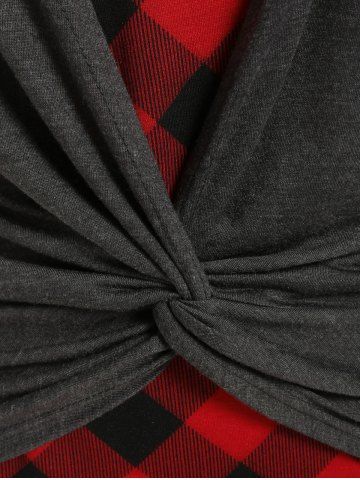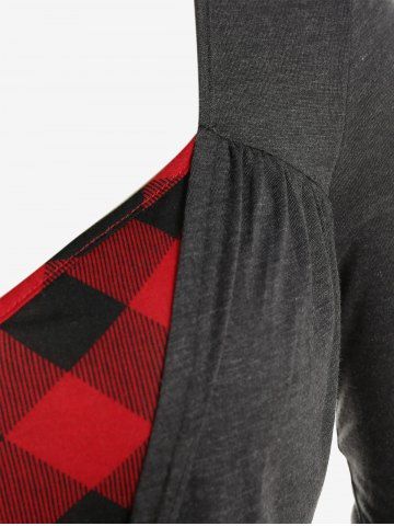 T-shirt Tordu en Avant à Carreaux de Grande Taille Faux Deux Pièces - Gris Foncé - Gris Foncé