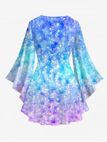 T-shirt grande taille à imprimé 3D pailleté galaxie ombré scintillant, manches évasées croisées. - Multi-a - 6x