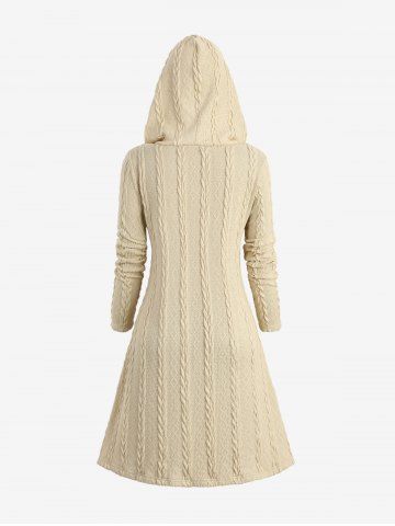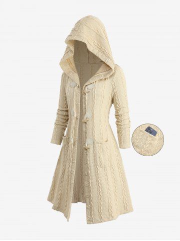 Manteaux > Manteau à Capuche en Tricot à Câble de Grande Taille avec Poches