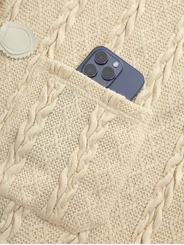 Manteau à Capuche en Tricot à Câble de Grande Taille avec Poches - Abricot - Abricot