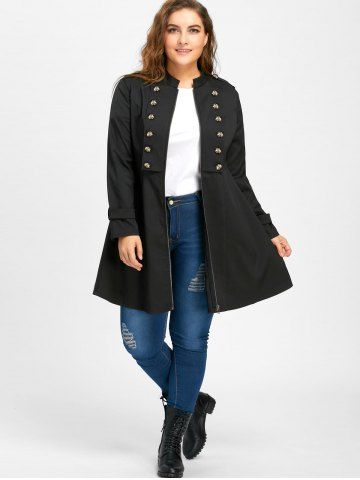 Plus Size Double Breasted Epaulet Flare Coat