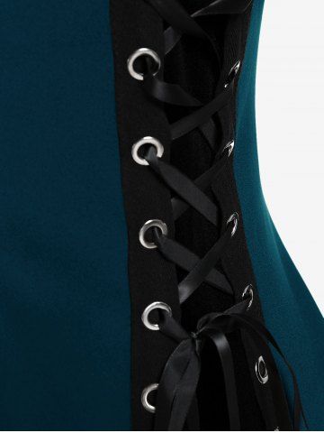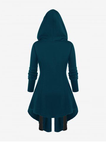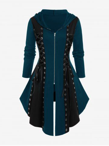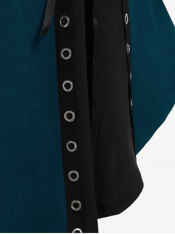 Manteau gothique à capuche, lacets et œillets, colorblock - Bleu Profond - L | Us 12