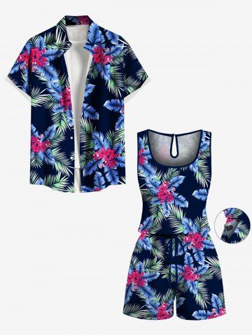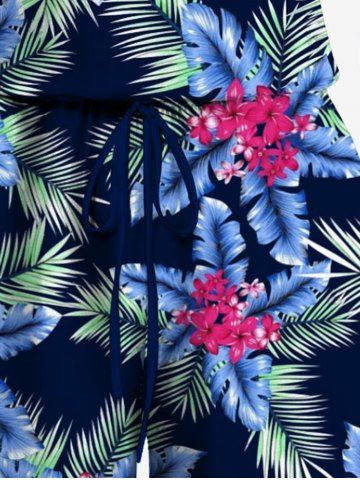 Pantalons Graphiques > Combinaison grande taille à imprimé cocotier, feuilles tropicales et fleurs hawaïennes avec cordon de serrage et poches