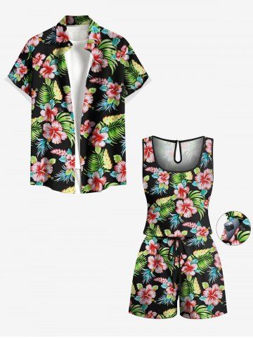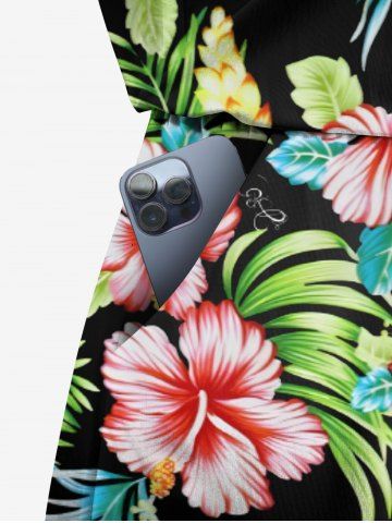 Barboteuse Chinée Fleur Feuille Tropicale Imprimées de Grande Taille - Noir - Noir