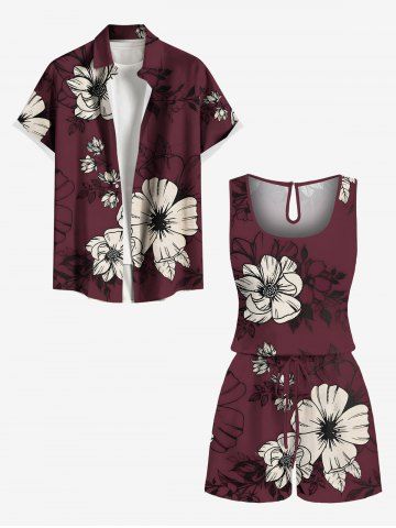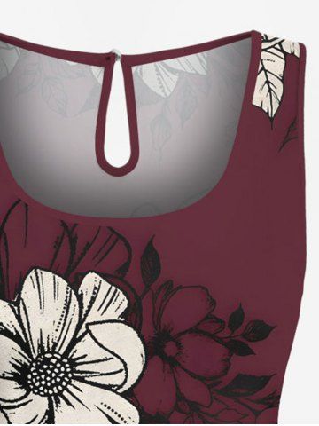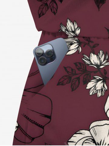 Combinaison grande taille à imprimé floral, feuilles et branches, style hawaïen ombré, avec cordon de serrage et poches - Rouge Vineux - S