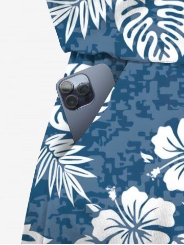 Combinaison grande taille à imprimé floral hawaïen, feuilles tropicales, hibiscus, cordon de serrage et poches - Bleu Ciel - Bleu Ciel
