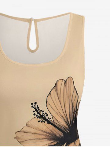 Combinaison grande taille à imprimé hibiscus dégradé coucher de soleil hawaïen avec cordon de serrage et poches - Café Lumière - 3x