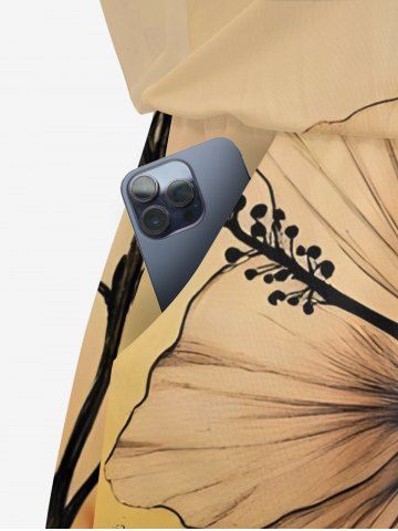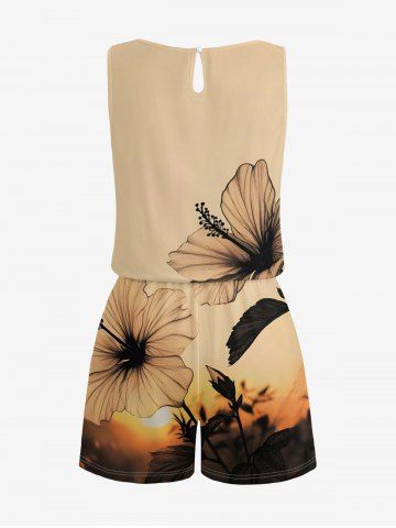 Combinaison grande taille à imprimé hibiscus dégradé coucher de soleil hawaïen avec cordon de serrage et poches - Café Lumière - 4x
