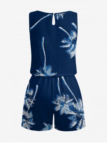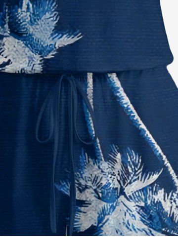 Combinaison hawaïenne à imprimé cocotier et poches à cordon de serrage, grande taille - Bleu Profond - Xs