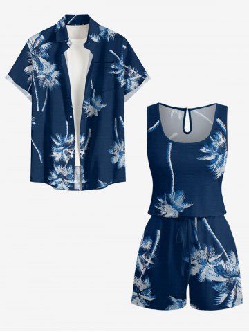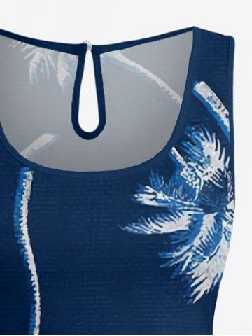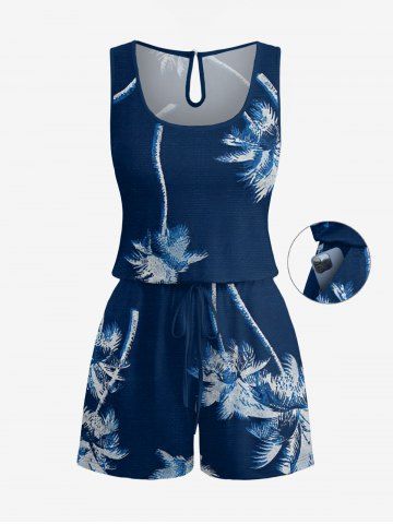 Combinaison hawaïenne à imprimé cocotier et poches à cordon de serrage, grande taille - Bleu Profond - L