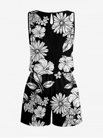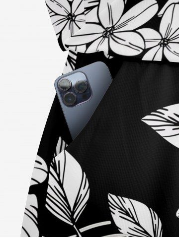 Combinaison hawaïenne à imprimé de feuilles et d'hibiscus, grande taille, avec cordon de serrage et poches. - Noir - Noir