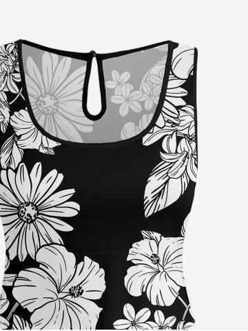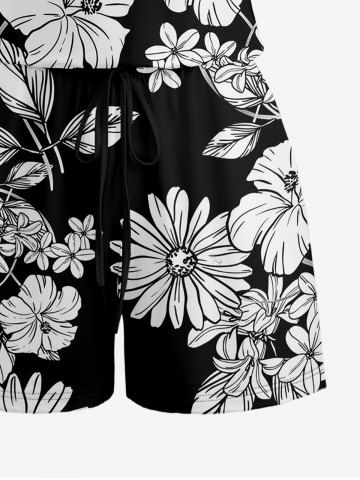 Combinaison hawaïenne à imprimé de feuilles et d'hibiscus, grande taille, avec cordon de serrage et poches. - Noir - Noir