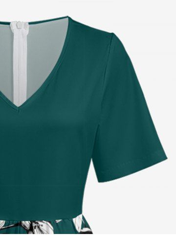 Combinaison hawaïenne à imprimé fleurs et feuilles, col en V et jambes larges - Turquoise Foncée - S