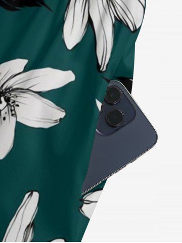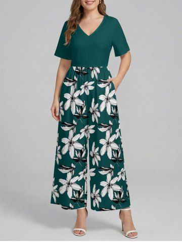 Combinaison hawaïenne à imprimé fleurs et feuilles, col en V et jambes larges - Turquoise Foncée - 3xl