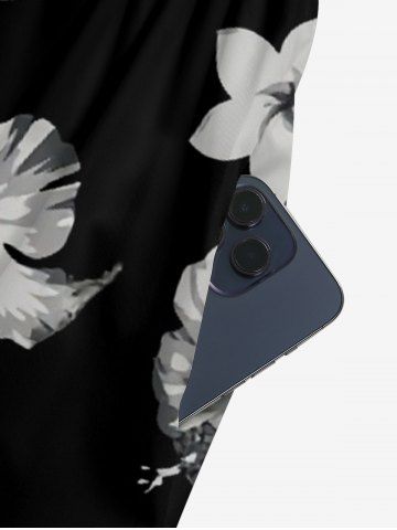 Combinaison hawaïenne à jambes larges et col en V, imprimée de feuilles tropicales et de fleurs d'hibiscus - Noir - Noir
