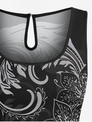 Combinaison hawaïenne cintrée à imprimé fleurs et feuilles grande taille - Noir - Noir