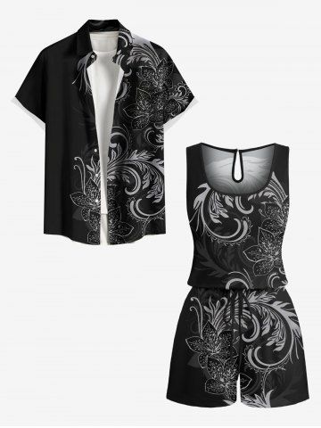 Pantalons Graphiques > Combinaison hawaïenne cintrée à imprimé fleurs et feuilles grande taille