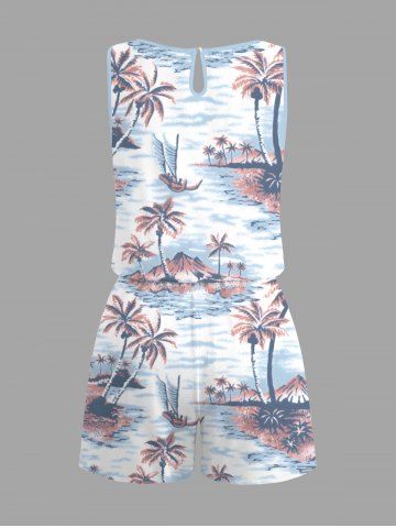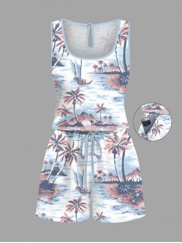 Pantalons Graphiques > Combinaison hawaïenne cintrée grande taille à imprimé cocotiers, vagues et bateaux