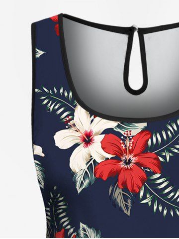 Combinaison hawaïenne cintrée grande taille à imprimé feuilles tropicales et fleurs d'hibiscus - Bleu Profond - Xs