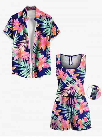 Pantalons Graphiques > Combinaison hawaïenne cintrée grande taille à imprimé feuilles tropicales et fleurs