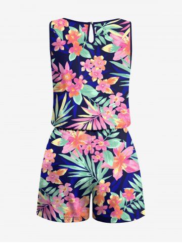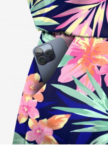 Combinaison hawaïenne cintrée grande taille à imprimé feuilles tropicales et fleurs - Bleu Profond - 6x