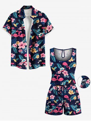 Pantalons Graphiques > Combinaison hawaïenne cintrée grande taille à imprimé flamant rose et feuilles tropicales