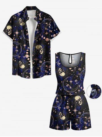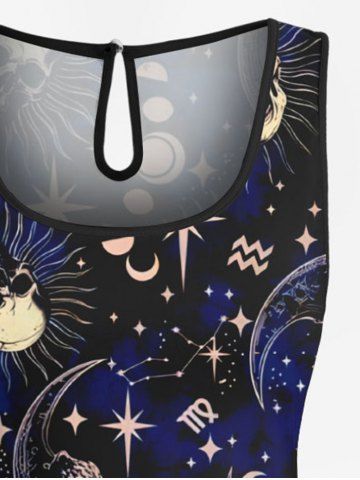 Pantalons Graphiques > Combinaison hawaïenne cintrée grande taille à imprimé galaxie, crânes, lune, soleil et étoiles