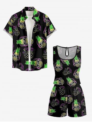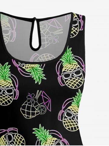 Combinaison hawaïenne grande taille à imprimé ananas et fleurs de jus de fruits, cintrée - Noir - Noir