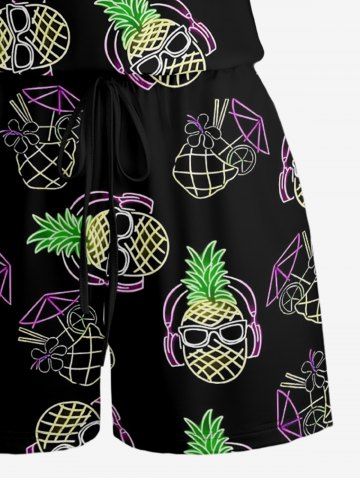 Combinaison hawaïenne grande taille à imprimé ananas et fleurs de jus de fruits, cintrée - Noir - Noir