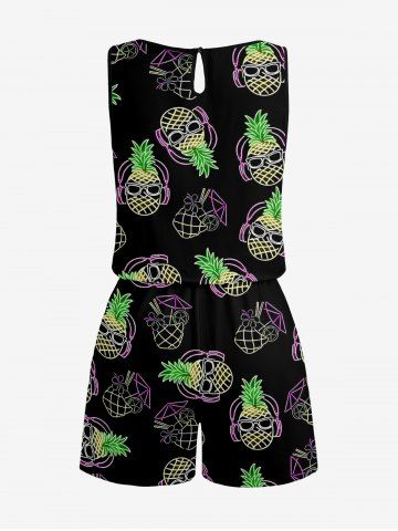 Combinaison hawaïenne grande taille à imprimé ananas et fleurs de jus de fruits, cintrée - Noir - Noir