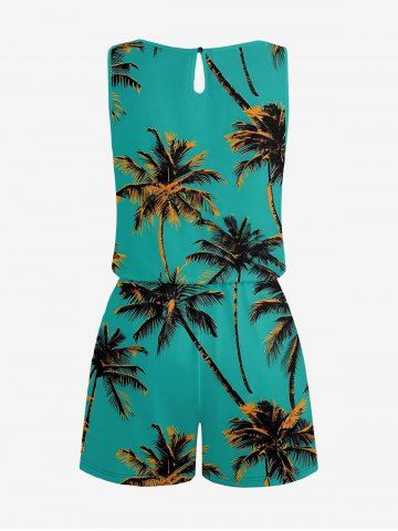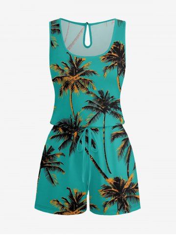 Combinaison hawaïenne grande taille à imprimé cocotier et taille haute - Turquoise Foncée - S