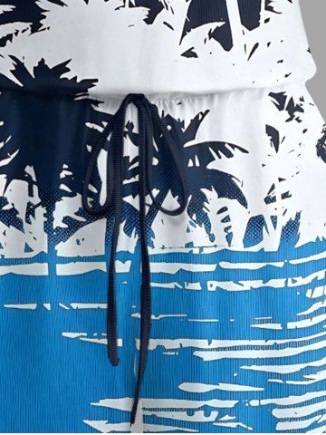 Combinaison hawaïenne grande taille à imprimé colorblock cocotier et mer, cintrée - Bleu Marine - Bleu Marin