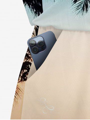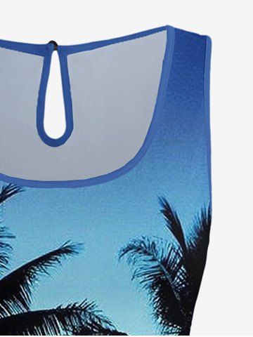 Combinaison hawaïenne grande taille à imprimé colorblock dégradé cocotier et taille haute - Bleu - Bleu