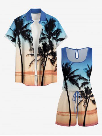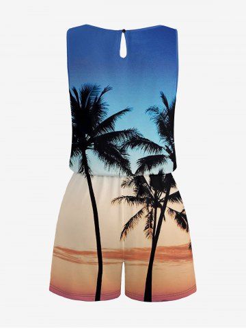 Combinaison hawaïenne grande taille à imprimé colorblock dégradé cocotier et taille haute - Bleu - Bleu