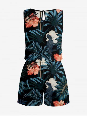 Pantalons Graphiques > Combinaison hawaïenne grande taille à imprimé de feuilles tropicales et d'hibiscus, avec cordon de serrage et poches.