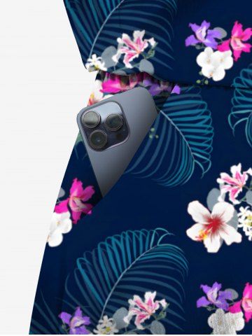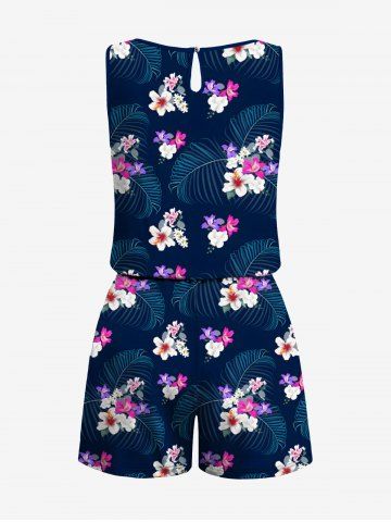 Combinaison hawaïenne grande taille à imprimé de feuilles tropicales et d'hibiscus, cintrée - Bleu De Minuit - Xs