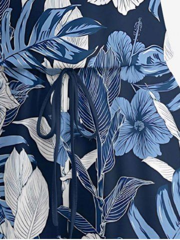 Combinaison hawaïenne grande taille à imprimé de feuilles tropicales et fleurs d'hibiscus, cintrée - Cadetblue - S