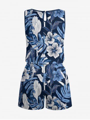 Pantalons Graphiques > Combinaison hawaïenne grande taille à imprimé de feuilles tropicales et fleurs d'hibiscus, cintrée