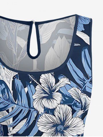 Combinaison hawaïenne grande taille à imprimé de feuilles tropicales et fleurs d'hibiscus, cintrée - Cadetblue - 5x