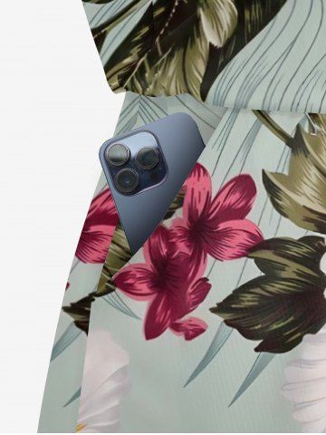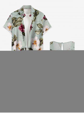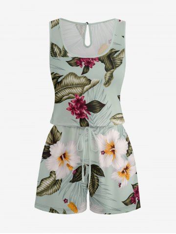 Combinaison hawaïenne grande taille à imprimé de fleurs d'hibiscus et de feuilles, cintrée - Vert Clair - Vert Clair