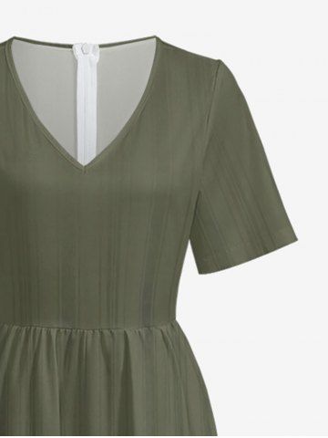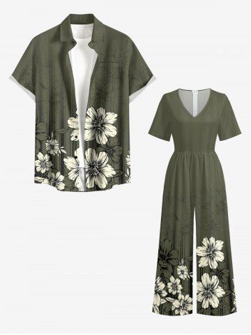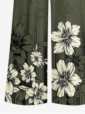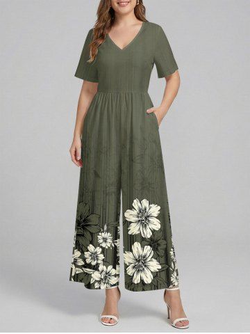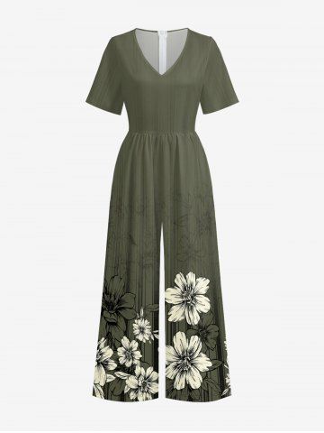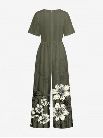 Combinaison hawaïenne grande taille à imprimé floral et rayures, col en V et jambes larges - Vert Armée - 3xl