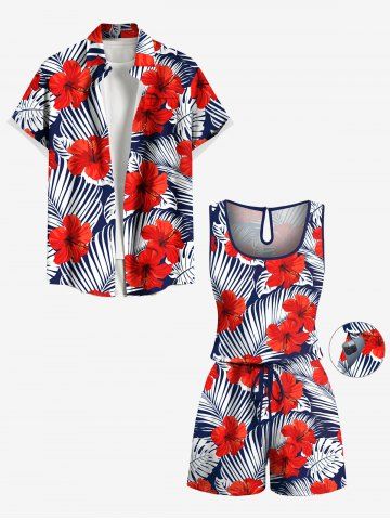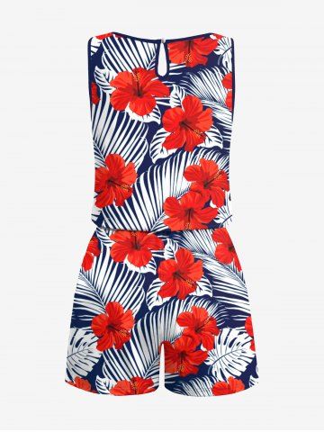 Combinaison hawaïenne grande taille à imprimé floral tropical et hibiscus, cintrée - Rouge - Rouge
