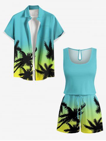 Pantalons Graphiques > Combinaison hawaïenne grande taille à imprimé ombré de cocotiers et ceinture