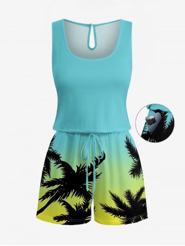 Pantalons Graphiques > Combinaison hawaïenne grande taille à imprimé ombré de cocotiers et ceinture
