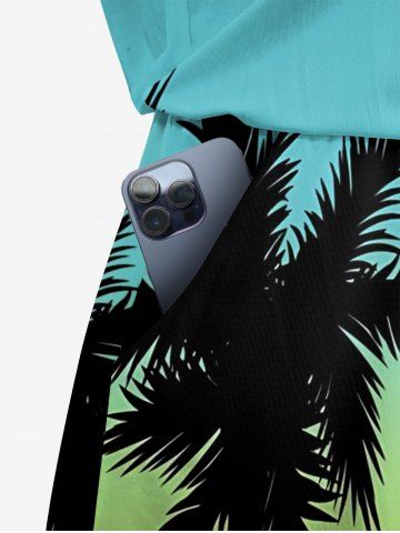 Combinaison hawaïenne grande taille à imprimé ombré de cocotiers et ceinture - Turquoise Foncée - 5x
