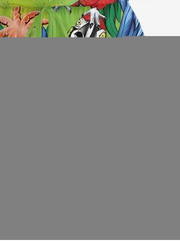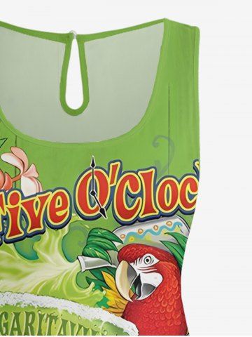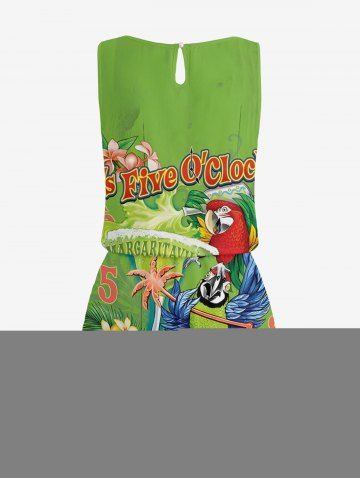 Combinaison hawaïenne grande taille à imprimé perroquet, jus de fruits, fleurs et feuilles, taille cintrée - Vert - Vert